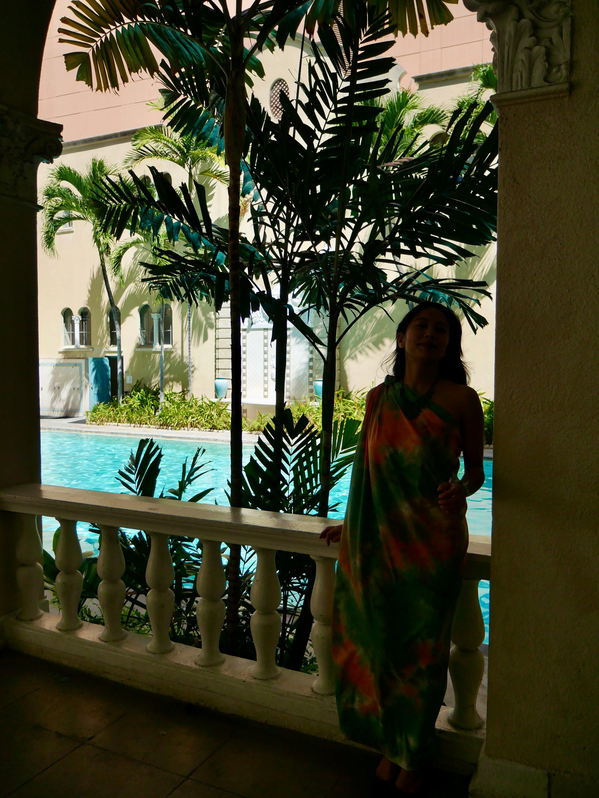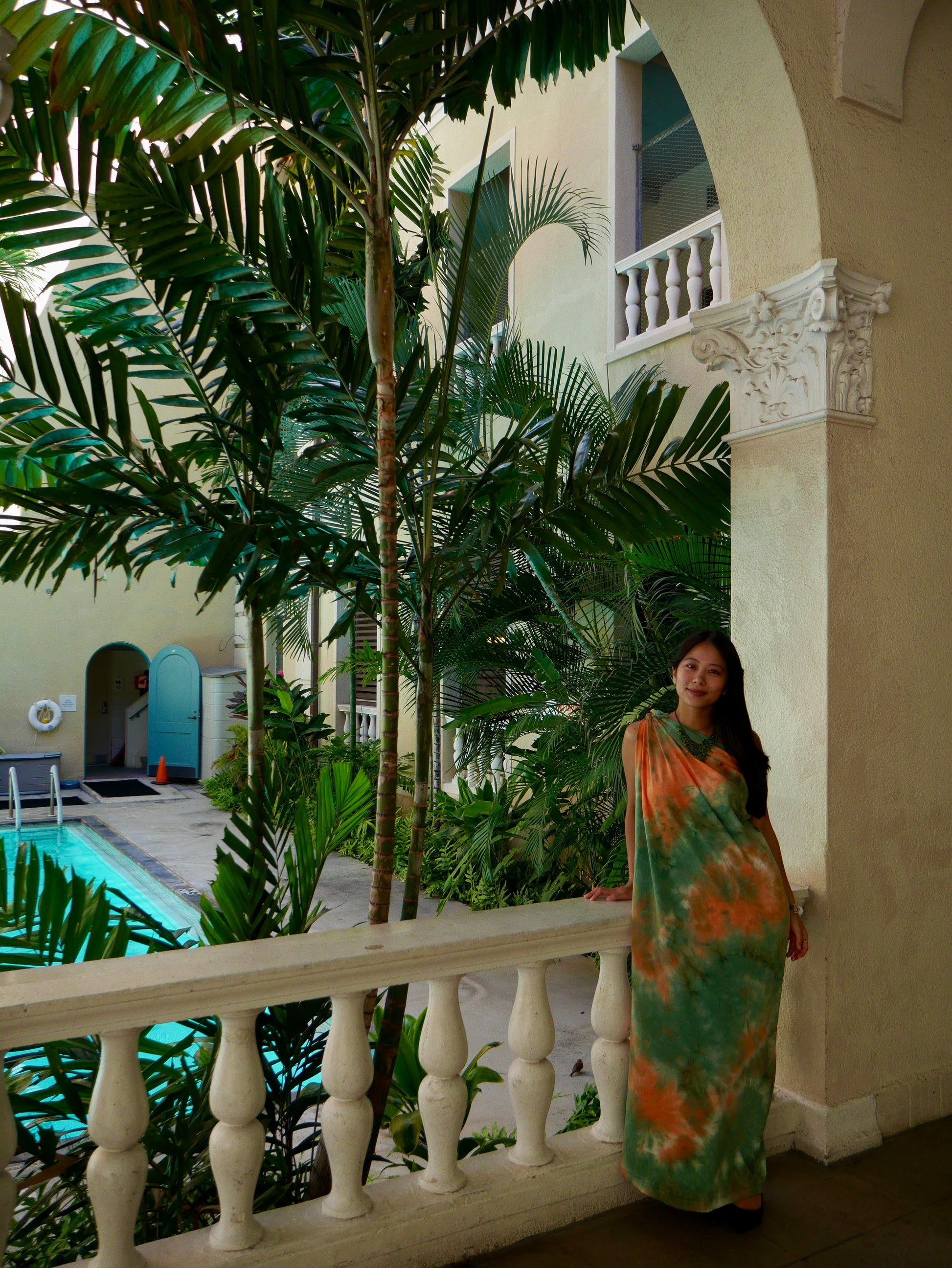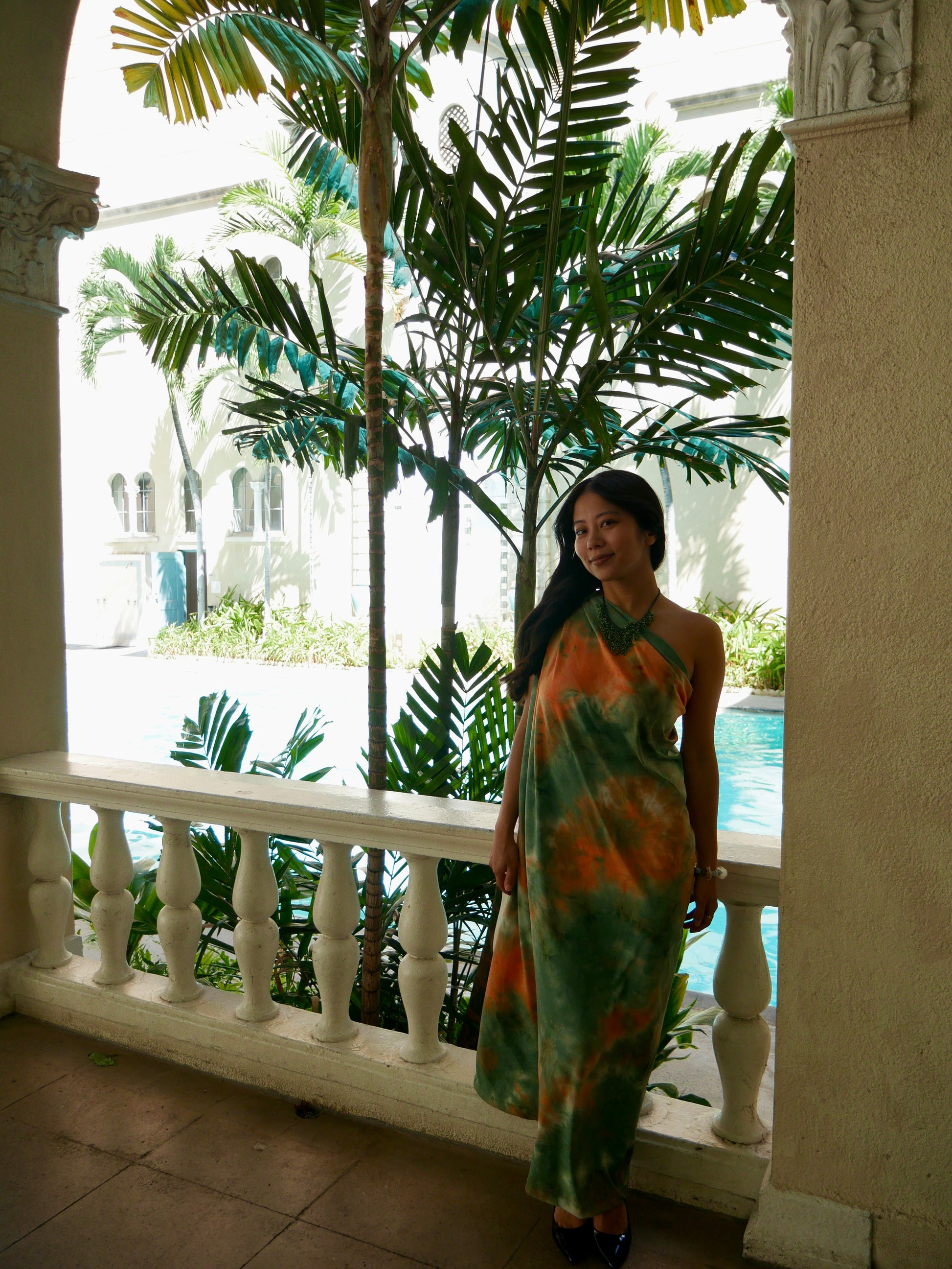 The Jane Dress is a one-of-a-kind, fall-forward silhouette handmade on O‘ahu, Hawai‘i. Designed by Elise Hatsuko in a rich, tie-dye print of fern green and burnt orange, this dress carries the warmth of autumn sunsets with an island soul.