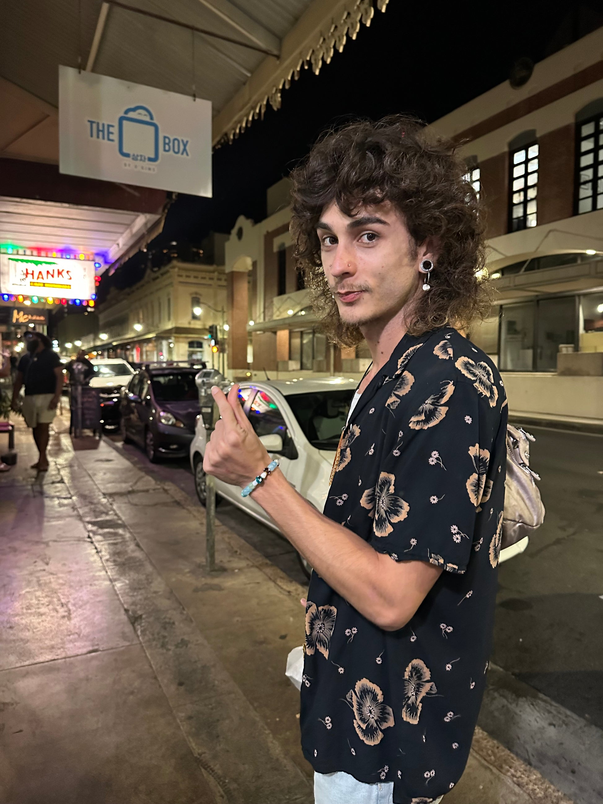 Seen on Wyatt Kaneshiro wearing Ocean in Chinatown, Honolulu.